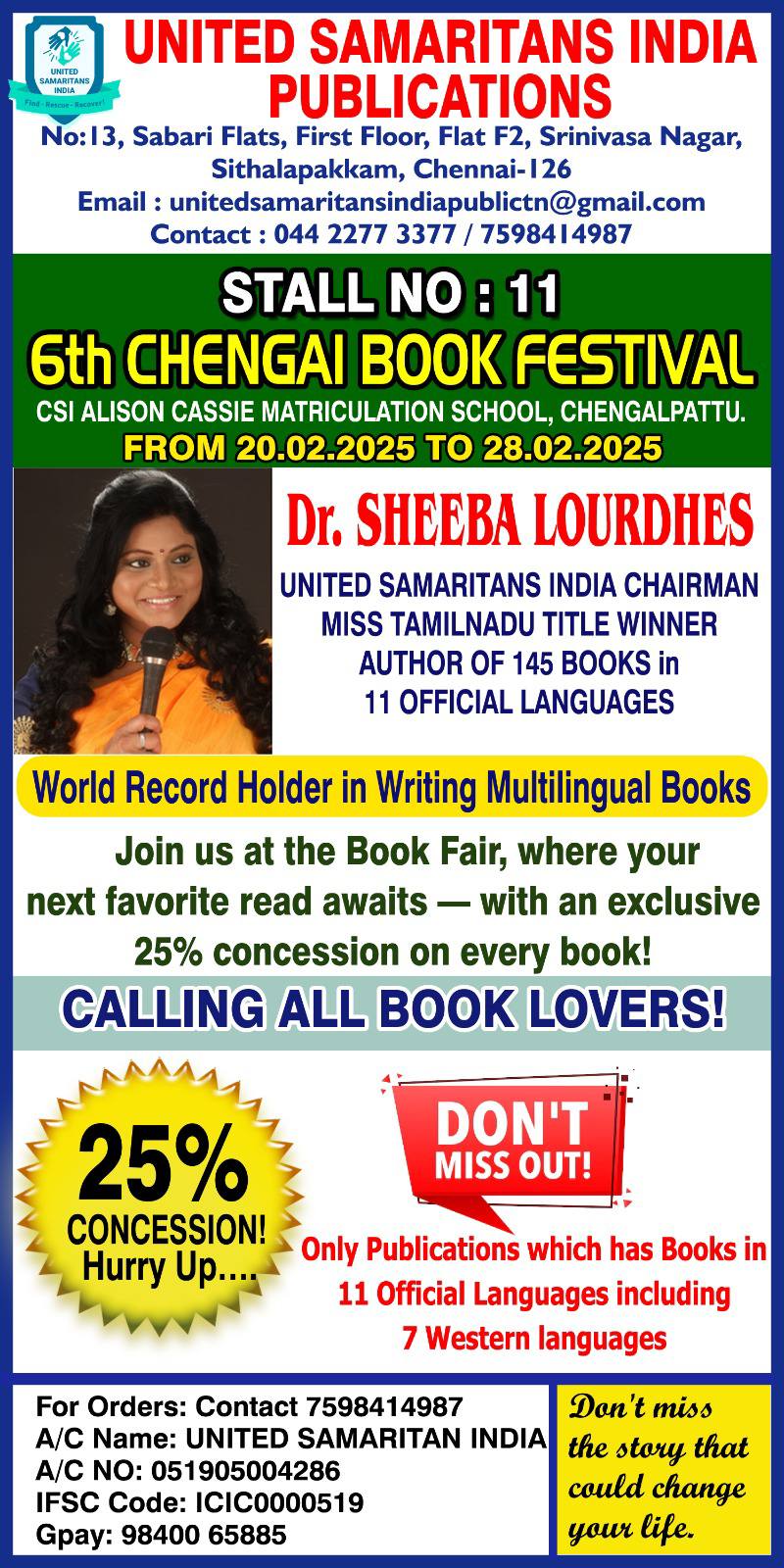 Under the visionary leadership of Dr. Sheeba Lourdhes, United Samaritans India Publications continues to inspire generations, merging intellectual brilliance with an unwavering commitment to societal betterment. The publication’s noble mission extends far beyond literature, striving to instill values of empathy, resilience, and compassion in every reader.